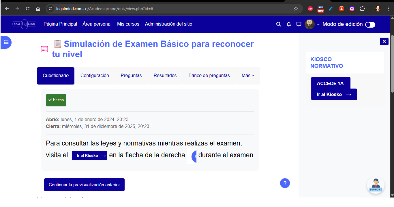 Compra tu curso para prepararte para el examen de idoneidad para abogados que se presentara en 2026, por solo 300 mil pesos, este curso tiene resultados garantizados y está enfocado en la simulación de exámenes y actualización general de todas las áreas de evaluación, con acceso de un año y múltiples intentos de examen.